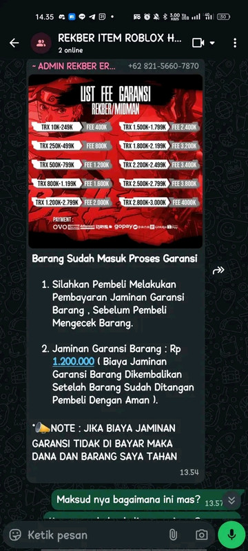 Nama Scammer: ErWin (Kho Win) / RIFANDI Rekber kok Minta duit Garansi