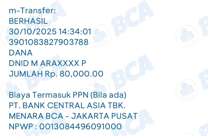 No. HP/Dana/Rekening: 083153488522 / 083135729165